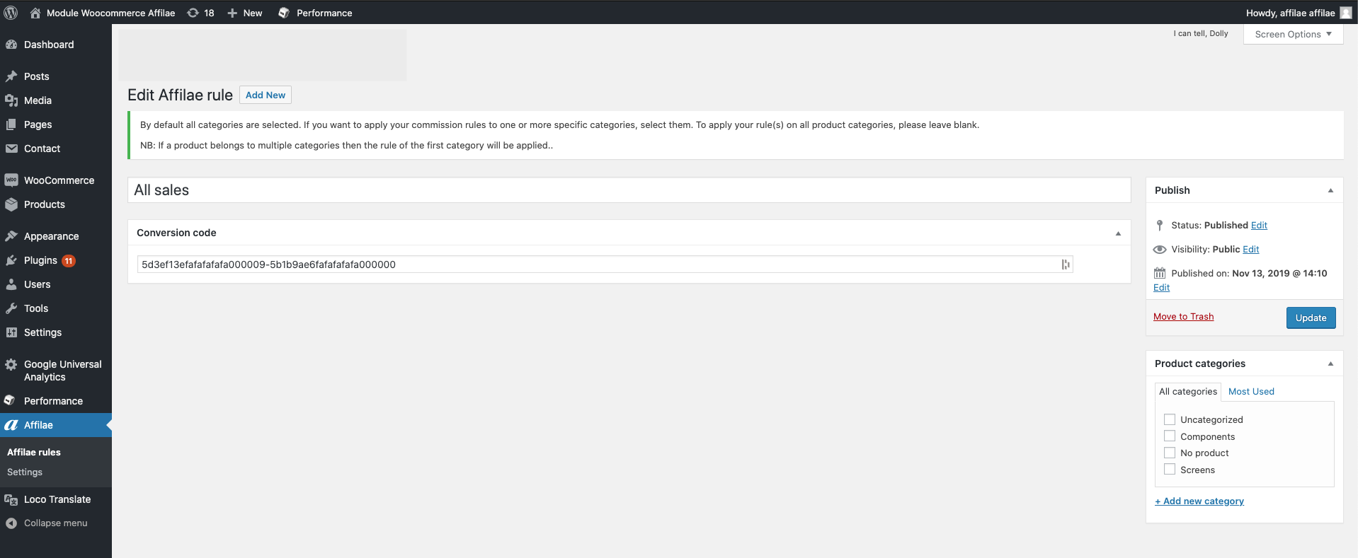 ⭑ Click then in the Affilae rules submenu